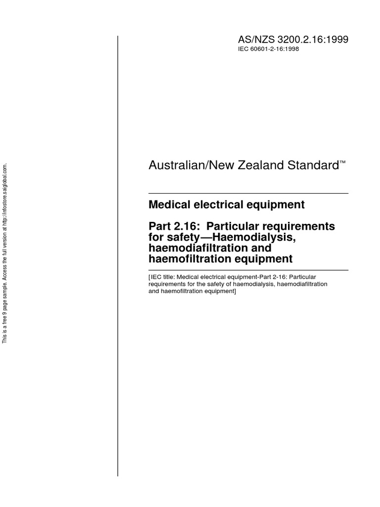 Detailed information about joint Australian/New Zealand Standards can be found by installations and take steps to implement the appropriate electrical safety requirements involving the regular use of medical electrical equipment. ... Fetch Here