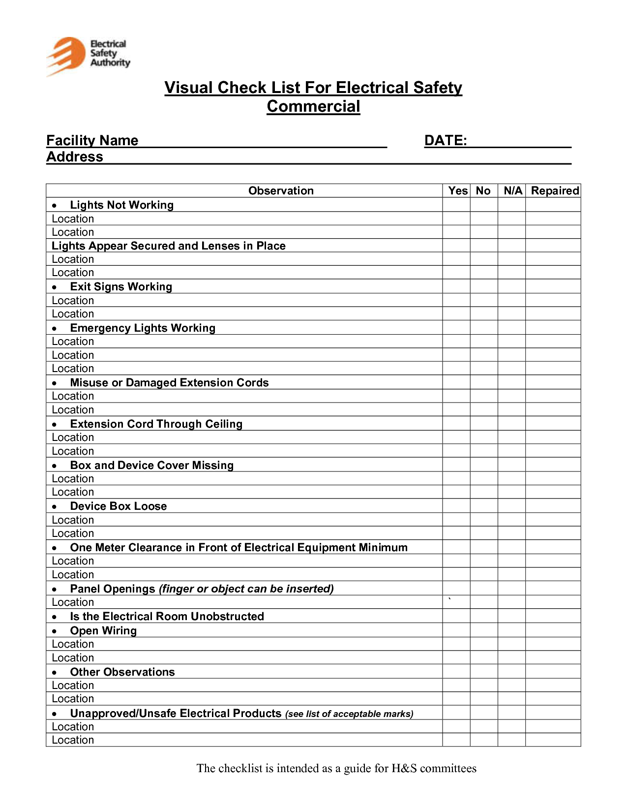 ELECTRICAL SAFETY AUDIT CHECKLIST Safety Audit Requirement