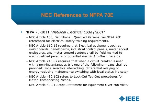 • NFPA 70E – Standard for Electrical Safety in the Workplace – 2012 Edition • CSA Standard Z462-12 – Workplace Electrical Safety • IEEE Standard 1584-2002 For Industrial Power Systems 1.0 12.47 KV TO 13.8 KV SYSTEMS ... Retrieve Content